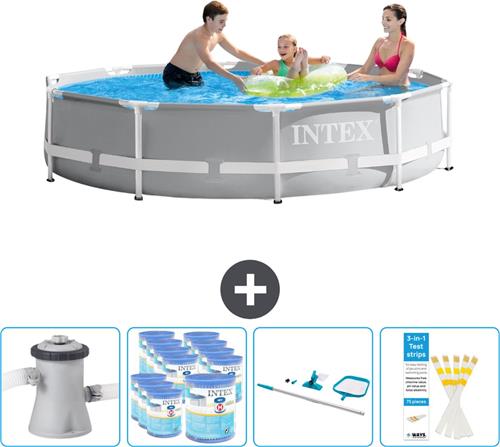 Controleer altijd voor aankoop de specificaties op de website van de webwinkel waar je Intex Rond Prism Frame Zwembad - 305 x 76 cm - Grijs - Inclusief Pomp Filters - Schoonmaakset - Testrips aankoopt