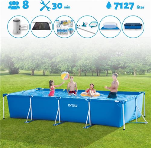 Met het Intex Zwembad haal je de perfecte opzetzwembad in huis voor jou en je gezin. Met een capaciteit van 7127 liter is er genoeg ruimte om samen te genieten van verkoeling op een warme zomerdag. Het rechthoekige ontwerp van 450 x 220 x 84 cm biedt voldoende zwemruimte voor volwassenen en kinderen.