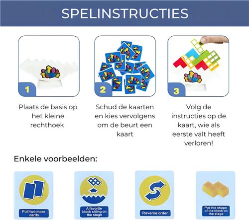 | Verpakkingsinhoud | 1x Plateau 1x basis 48x bouwblokken 22x spelkaarten |