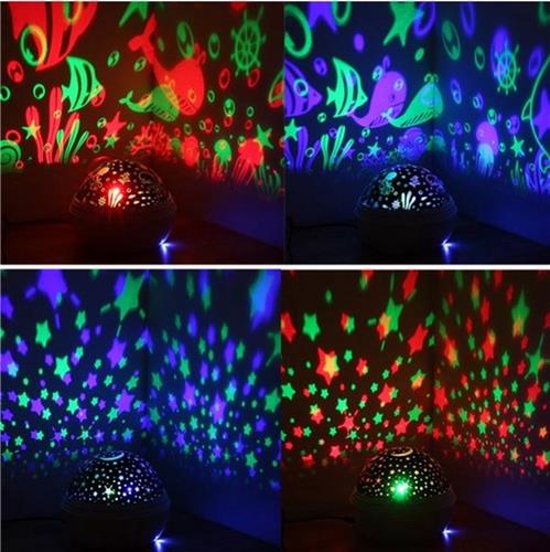 Is uw kind soms moeilijk in slaap te krijgen in het donker? Probeer dan eens deze projectorlamp met sterrenhemel- en onderwaterwereldprojecties. Met twee standen om uit te kiezen - een 360 graden projector of een nachtlamp - en de mogelijkheid om uit 8 kleuren te kiezen, biedt deze lamp een rustgevende sfeer voor elke ruimte. De compacte en stijlvolle lamp werkt op 4 AAA-batterijen of via USB. Ideaal voor baby's, kinderen en zelfs volwassenen die behoefte hebben aan een vleugje magie en rust op hun kamer. Laat uw kleintje wegdromen onder een prachtige sterrenhemel of tussen de betoverende onderwaterscène.