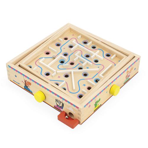 Het doel van dit ingenieuze spel is eenvoudig: draai het centrale bord met de draaiknoppen op twee assen en rol de knikker over het parcours vol hindernissen. Maar pas op! Vermijd de openingen en anticipeer op de beweging van de knikker om het einde van het pad te bereiken. De kleurrijke pijlen op het bord wijzen de weg en maken het spel toegankelijk voor alle kinderen.