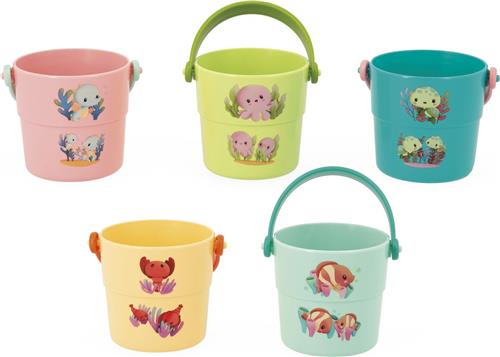 Janod Badspeelgoed - Bademmers Met Babydieren - Set Van 5 Kleurrijk Geïllustreerde Emmertjes Met Zeedieren En Cijfers - Geschikt Vanaf 10 Maanden