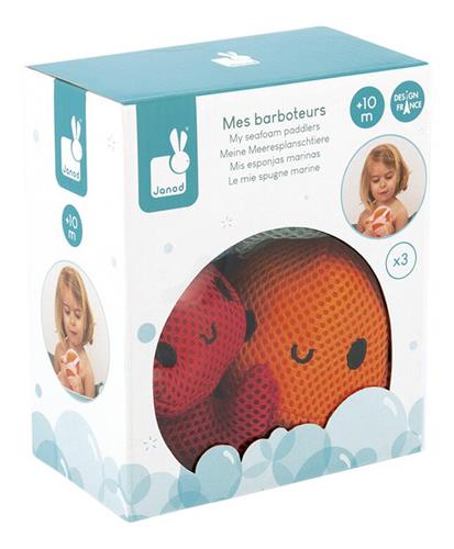 Janod Badspeelgoed - Set van 3 Badvriendjes Sponsjes Zeeschuim - De Sponsjes Schuimen Als Ze In Contact Komen Met Water En Zeep! - Geschikt Vanaf 10 Maanden
