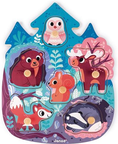 Janod Knoppuzzel - Bosdieren - Houten Puzzel Met 6 Stukjes - De Houten Pinnen Op Elk Stuk Maken Het Makkelijk Om Deze Vast Te Pakken - Geschikt Vanaf 18 Maanden