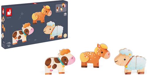 Met de Janod Magneten - Boerderij kunnen kinderen van 18 tot 36 maanden zich urenlang vermaken. Dit houten speelgoed bestaat uit 3 dieren die elk bestaan uit 3 magnetische delen. Kinderen kunnen de delen loshalen, creatief mixen en vervolgens weer samenvoegen. Dit zorgt voor een leuk combinatie- en verbeeldingsspel waar kinderen veel plezier aan zullen beleven.