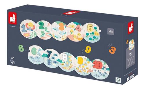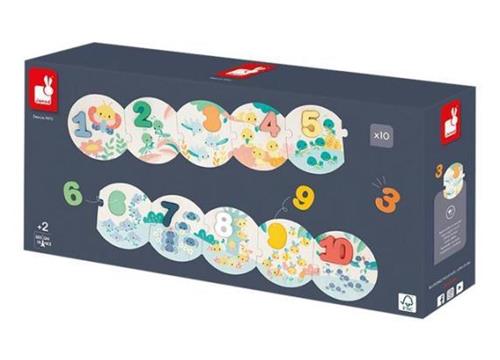 Met de Janod Pure - Mijn eerste Puzzel met Cijfers kunnen jongens en meisjes vanaf 2 jaar oud op een leuke en educatieve manier kennismaken met cijfers. De puzzel bestaat uit 10 puzzelstukjes en is gemaakt van karton en hout. De verpakking weegt 0.61 kg en bevat 1 puzzel.
