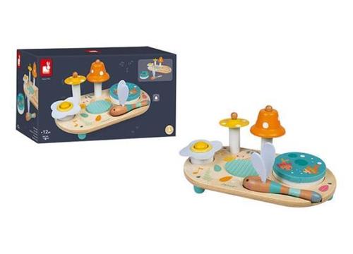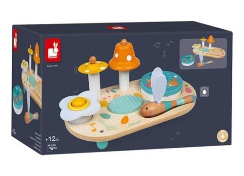 Janod Pure - Muziektafel - Bestaat Uit Een Cymbaal, Een Klok, Een Krabber, Een Bel En Een Afneembare Tamboerijn - Geschikt Vanaf 1 Jaar