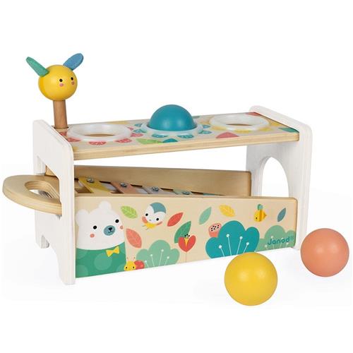 Janod Pure - Tap Tap Xylofoon - Behendigheidsspel - 2 Spelletjes In 1: Een Bijenhamer Om Op De 3 Vallende Ballen Te Slaan En Een Uitneembare Xylofoon Om Overal Te Kunnen Spelen! - Geschikt Vanaf 1 Jaar