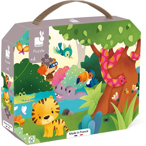 Janod - Puzzel Wilde Dieren (Panorama) - In Puzzelkoffer - 36 Stukjes - Geschikt Vanaf 4 Jaar