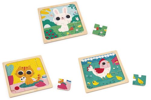Janod - Puzzelset Met Houten Puzzels In Dierenthema - 3 Puzzels Met 9 Stukken - Geschikt Vanaf 18 Maanden