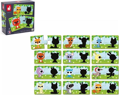 Janod Puzzelspel - Dieren En Hun Schaduw - Associatiespel Voor Kinderen, Met Als Thema Dieren En Hun Schaduw - Set Van 12 Educatieve Puzzels - Geschikt Vanaf 2 Jaar