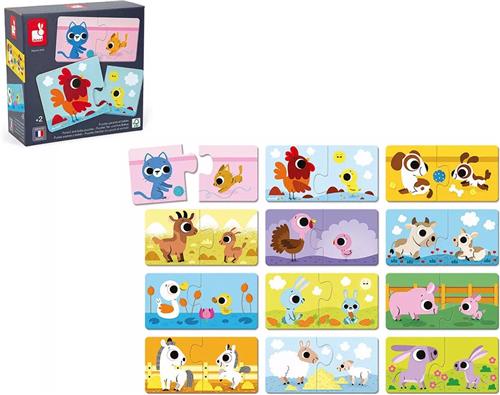 Janod Puzzelspel - Ouders En Babydieren - Associatiespel Voor Kinderen, Met Als Thema Boerderijdieren En Hun Jongen - Set Van 12 Educatieve Puzzels - Ideaal Voor Het Ontwikkelen Van De Fijne Motoriek En Concentratie - Geschikt Vanaf 2 Jaar