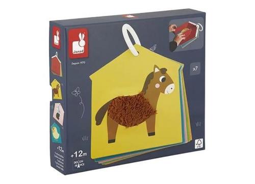 Merk: Janod. MPN (Manufacturer Part Number): J02692. EAN: 3700217326920. Editie: Maak kennis met de dieren van de boerderij! Open de deuren van de boerderij en uw kind zal een van de 6 getextureerde kaarten met het thema boerderijdieren ontdekken. Wie is het zachtst? Is het de koe of het konijn? Dit educatief speelgoed is ideaal voor het ontwikkelen van de tastzin. Het is tevens zeer handig om overal mee naartoe te nemen dankzij de kunststof ring. Speelgoed van FSCTM-karton. Educatief speelgoed voor kinderen vanaf 12 maanden. Materiaal: Karton.
