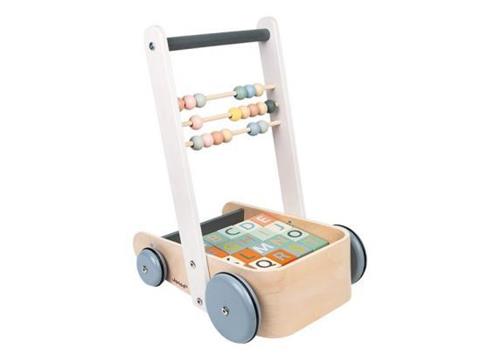 Janod Sweet Cocoon - Duwkar Blokken ABC - Een Activiteitenwagen Voor De Eerste Pasjes - Inclusief 20 Blokken Met De Letters Van Het Alfabet, Cijfers En Eenvoudige Vormen, En Een Telraam Met 3 Rijen Om Te Leren Tellen - Geschikt Vanaf 1 Jaar