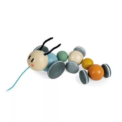 Janod Sweet Cocoon - Houten Trekfiguur Rups - Met Geruisloze Wielen - Geschikt Vanaf 1 Jaar