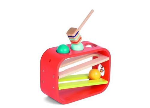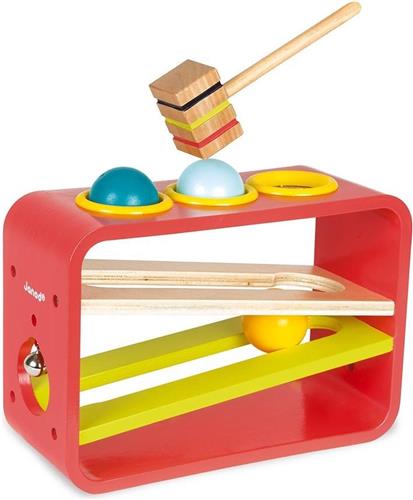 | Verpakkingsinhoud | 1 hamer, 3 gekleurde ballen, 1 houten hamertje tik baan. |