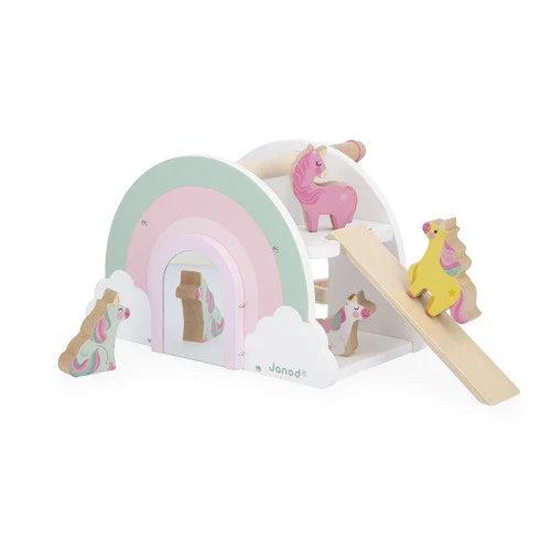 Janod Unicorn - Eenhoorn Wasstraat - Inclusief 4 Eenhoornfiguurtjes En 2 Accessoires - Met Geheime Spiegeldeur - Stimuleert De Verbeelding - Geschikt Vanaf 18 Maanden