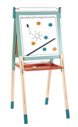 Janod - Verstelbaar Magneetbord - Met In Hoogte Verstelbare Poten - Bevat Magnetisch Wit Vlak En Krijtbord Vlak - Inclusief 22 Accessoires Om Te Tekenen En Te Spelen - Geschikt Vanaf 3 Jaar