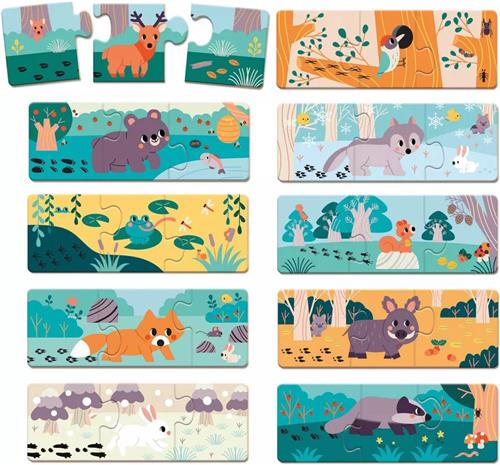 Janod WWF - Educatieve Puzzel Spoorzoeken - Met De Kleurrijke Illustraties Kunnen Kinderen De Dierenafdrukken Op Het Eerste Stuk Identificeren, Het Dier Op Het Tweede En Wat Het Eet Op Het Laatste Stuk - Geschikt Vanaf 2 Jaar