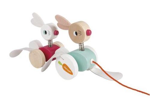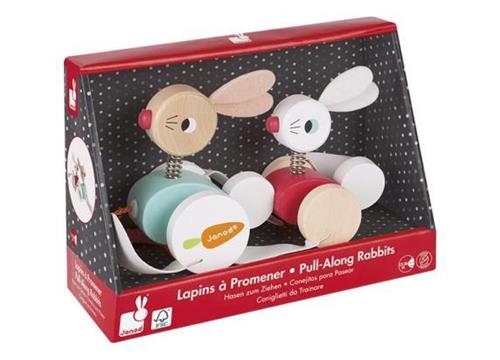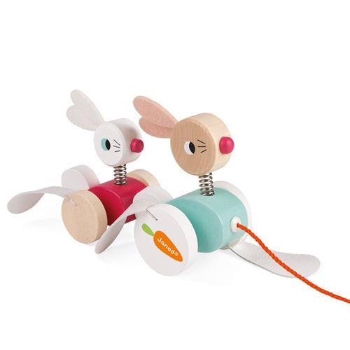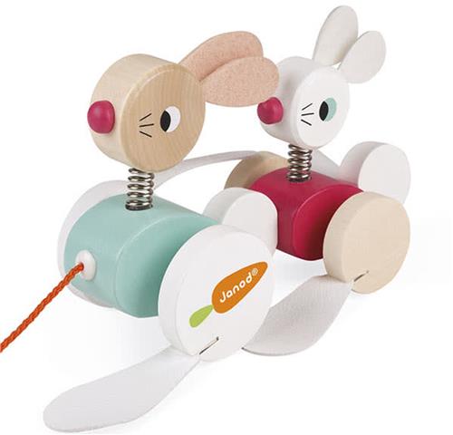 Janod Zigolos - Trekfiguur Konijnen - Houten Speelfiguur - Koordlengte: 50 cm - Geschikt Vanaf 1 Jaar