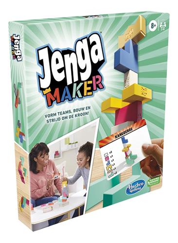 - PERFECT PARTY SPEL: met Jenga Maker wordt een feestje extra leuk! Deze variant op de het klassieke torenspel is perfect voor elke spelletjesavond met het gezin. Een leuk spel voor volwassenen en kinderen vanaf 8 jaar.