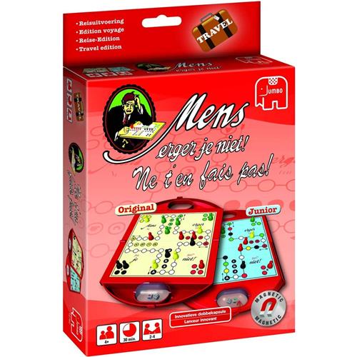 - Bij Bol.com kun je Jumbo Mens Erger Je Niet Reiseditie - reisspel kopen voor de prijs van € 9,99. Dit is vandaag de goedkoopste webshop.