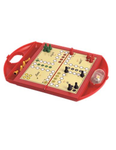| Verpakkingsinhoud | Inhoud voor Original versie: Speelbord (geel), 4 x 4 Magnetische pionnen, (geel, rood, zwart, groen), Dobbelsteen, Spelregels. Inhoud voor Junior versie: Speelbord (blauw), 4 x 3 pionnen (geel, rood, zwart, groen), Kleurendobbelsteen, Spelregels. |