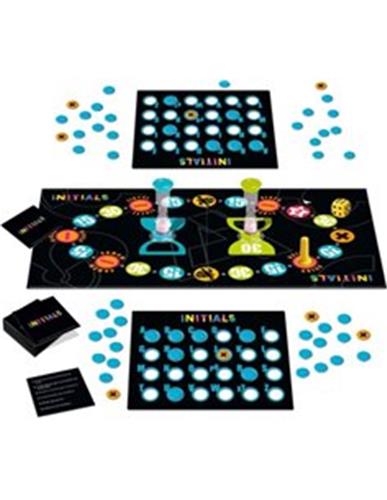 Het doel van Initials is om als eerste team het letterbord vol te krijgen. Zo speel je het; 1. Maak twee teams. Het eerste team gooit de dobbelsteen, loopt met de pion en draait de desbetreffende zandloper om. 2. De tegenstanders pakken een kaart en lezen de opdracht voor die correspondeert met het aantal gegooide ogen. 3. Het team dat aan de beurt is, moet binnen de aangegeven tijd zoveel mogelijk woorden noemen die beginnen met de verschillende letters van het alfabet om een fiche te mogen leggen in de gaten bij deze letters op hun letterbord. 4. Het team dat als eerste alle fiches op het letterbord heeft gelegd, wint het spel! Kenmerken Initials Gezelschapsspel voor volwassenen en kinderen vanaf 8 jaar, van de makers van Party & Co! Gemiddelde speeltijd: 30 minuten Partyspel van klein formaat dat de woordenschat stimuleert Inhoud 55 kaarten (330 vragen) 1 speelbord 2 borden met de letters van het alfabet 60 fiches 2 zandlopers (15 en 30 seconden) 1 pion 1 dobbelsteen.