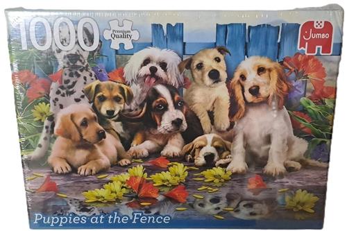 - Bij Bol.com kun je Jumbo Puzzel Puppies at the Fence 1000 stukjes kopen voor de prijs van € 24,99. Dit is vandaag de goedkoopste webshop.