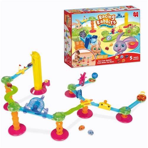 - Bij Bol.com kun je Jumbo - Racing Rabbits - Deluxe Set - Knikkerbaan vanaf 3 jaar kopen voor de prijs van € 13,49. Dit is vandaag de goedkoopste webshop.