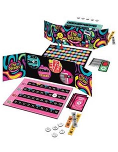 The Decades is een nieuw partyspel voor volwassenen van de makers van Party Co. Wanneer is de eerste iPhone uitgebracht? In welk jaar verscheen het album Nevermind van Nirvana? The Decades is een heerlijk partyspel dat jullie meeneemt op een reis door de tijd. Maak twee teams probeer het exacte jaar te raden waarin een film in première ging of een lied is uitgebracht, er iets in de wereld gebeurde wat veel impact had, en meer... Maak slim gebruik van de tijdrekkers en actiekaarten en scoor met je team de meeste punten. Ben je er klaar voor om je geheugen op de proef te stellen? The Decades wordt in 4 rondes gespeeld. Elke ronde is in 3 stappen onderverdeeld en elke stap wordt gelijktijdig door de beide teams uitgevoerd. Stap 1: Ga weer even terug in de tijd en raad het jaar. Stap 2: Gebruik bij twijfel een tijdrekker of zet een actiekaart in. Stap 3: Scoor met jouw team de meeste punten EN WIN INHOUD: 43 kaarten met 516 vragen, 1 controlekaart, 14 actiekaarten, 2 schermen, 2 speelborden, 1 scorebord, 2 pionnen, 2x6 antwoordfiches, 2x3 tijdrekkers en spelregels.