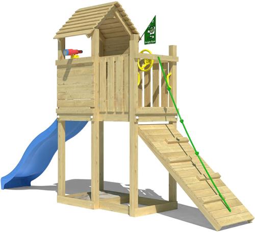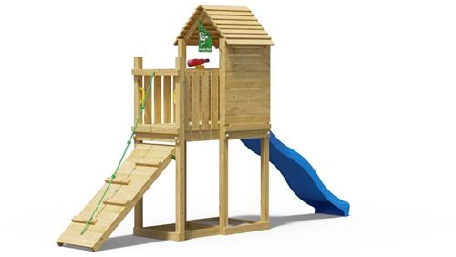 Jungle Gym Speeltoestel Klimtoestel van Grenen Hout | Jungle Pod met blauw Glijbaan | Tuin Speeltoestel voor kinderen met Zandbak en Klimrek
