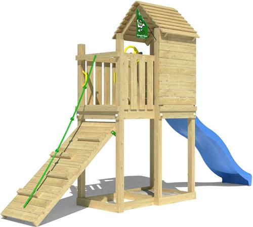 Laat je kinderen elke dag genieten van buitenspeelplezier met het Jungle Pod klimtoestel van hoogwaardig grenen hout. Dit speeltoestel is ontworpen om jonge ontdekkingsreizigers urenlang bezig te houden. Met een blauwe glijbaan, een uitdagende klimhelling, dubbel speeldek en geïntegreerde zandbak biedt de Jungle Pod volop speelmogelijkheden in de eigen achtertuin.