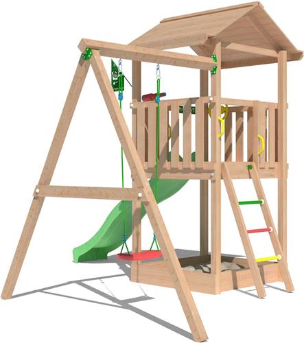 Jungle Gym Speeltoestel Klimtoestel van Verduurzaamd Douglas Hout | Jungle House met Groene Glijbaan | Tuin Speeltoestel voor kinderen met Zandbak en Schommel