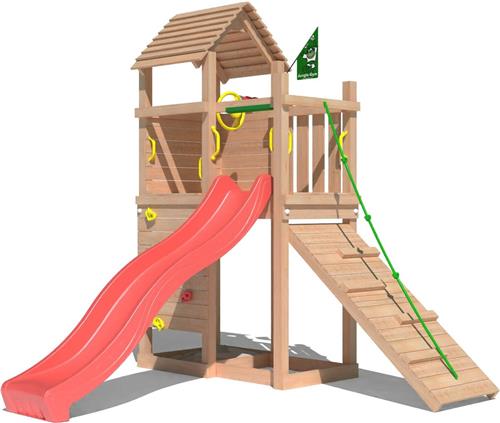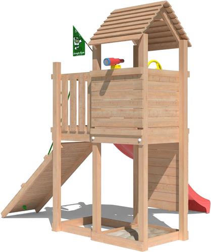 Dompel je onder in buitenavonturen met het Jungle Gym speeltoestel van Douglas hout, de Jungle Roamer! Dit tuinspeeltoestel voor buiten is perfect voor kinderen die van avontuur houden. Met een rode glijbaan, klimwand, klimhelling en meer biedt dit compacte speeltoestel eindeloos speelplezier in de zon.