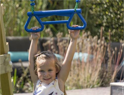 Dit klimtoestel bevat maar liefst 2 schommels, een klimtrappetje, een klimnet, een trappetje, en zelfs een zandbak! Voor extra verfrissing is er een wateraansluiting op de glijbaan, waardoor de pret nooit hoeft te stoppen. Veiligheid staat voorop bij Jungle Gym, daarom bevat de Tower 2-Climb stevige grondankers, stootkussentjes, afwerkdoppen en veilige handvatten met anti-slip coating.