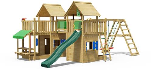 Jungle Gym speeltoestel van grenen hout - Jungle Titan met donkergroene glijbaan - Tuin speeltoestel voor buiten met zandbak, schommels en speelhuisje