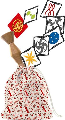 Grijp de Totem en win! Speciale, milieuvriendelijke versie van het Jungle Speed spel waarbij de verpakking in een ECO versie (zonder plastic) is veranderd en het zakje met de kaarten is van 100% biologisch katoen. Je moet zo snel mogelijk al je speelkaarten wegspelen. Dit doe je door aandachtig naar de kaarten op tafel te kijken. Draait een tegenstander een kaart om waarop hetzelfde symbool staat als op de jouwe? Pak dan zo snel mogelijk de totem en raak jouw kaart kwijt. Maar let op, want sommige figuren lijken wel hetzelfde, maar zijn net iets anders! Snelheid en concentratie zijn essentieel bij het vliegensvlugge Jungle Speed. De speler die als eerst van al zijn kaarten af is, is de winnaar.