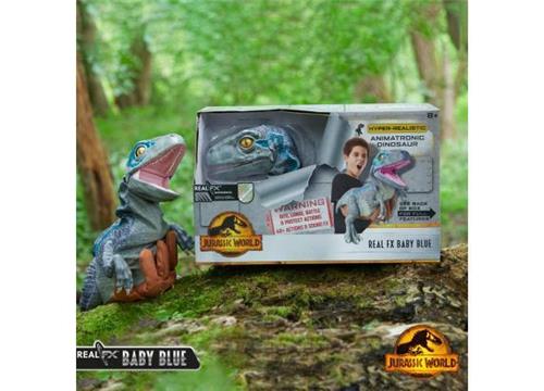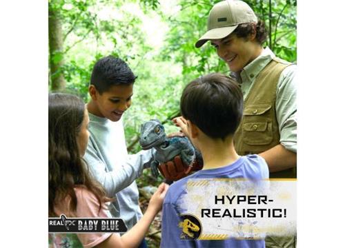 De Real FX Baby Blue wordt aangedreven door 3 LR03-batterijen (niet inbegrepen) en kan meer dan 20 verschillende geluidseffecten afspelen, rechtstreeks uit de film en bonusgeluiden. Het bedienen van de acties van deze realistische dinosaurus is eenvoudig; steek gewoon je hand in de handschoen en activeer de verschillende bewegingen door de trekker over te halen. Zo wordt het spelen nog leuker en levendiger.