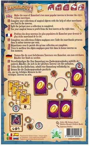 Taveernen, gemotiveerde handelaren en magische objecten zijn alles wat je nodig hebt om de rijkste handelaar in Kameloot te worden. Maar welke taverne kies je; De uilenhoeve taverne waar paladins en tovenaars samenkomen met rijke handelaren OF de zwarte kat taverne, thuisbasis van bedrieglijke boeven en samenzwerende tovenaars? Pas op voor verraders, er is geen genade in de taveernen!