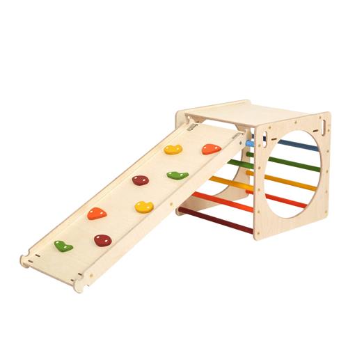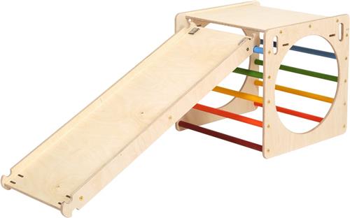 KateHaa Houten Activiteiten Kubus met Klimwand Regenboog - Klimrek - Houten Montessori Speelgoed