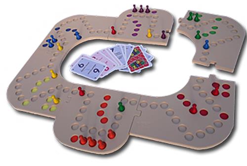 | Verpakkingsinhoud | Het zespersoons kunststof Keezbord wordt compleet geleverd, met in de doos: - 6 gegoten kunststof speelbord stukken - 24 houten pionnen in 6 verschillende kleuren - 2 Pakjes keezkaarten - Spelregels - Tokkenset - Hiermee kunt u op dit bord ook het Tokken spel spelen! De Engelse versie van het Keezen! Voordeel van een kunststof spelbord: |