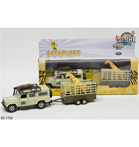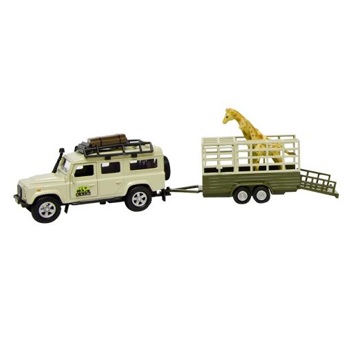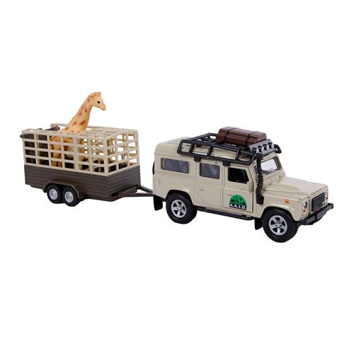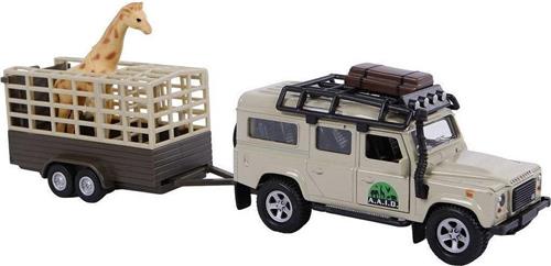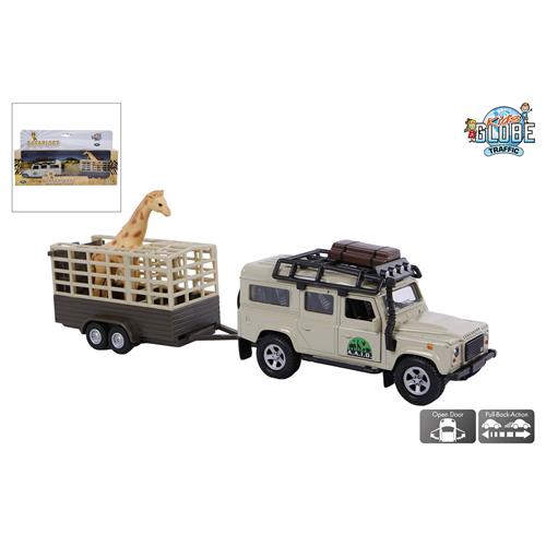 Kids Globe Die-cast Land Rover met Giraffe-trailer, 29cm