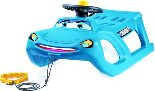 De Kinderslee met stuur - blauw is zo snel als een slee met een ontwerp dat een veilige en comfortabele rit biedt. De slee is voorzien van een praktisch gekleurd touwtje om hem over de sneeuw te trekken. Gebruik je voeten om af te remmen en te stoppen.
