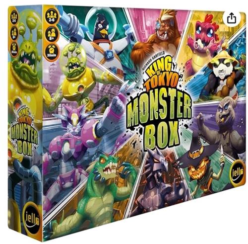 De hele King of Tokyo shebang in één Monster Box! De strijd om de stad Tokyo te domineren is nog nooit zo competitief geweest! Deze explosieve Monster Box zit boordevol plezier en adrenaline! Ontvang King of Tokyo en al zijn onmisbare Power Up! en Halloween-uitbreidingen voor uren en uren vol actie. Gebruik de Evolutiekaarten van je Monster om nog specialere eigenschappen te krijgen en kleed ze aan voor nog meer plezier! De Monster Box wordt geleverd met een gloednieuwe versie van Gigazaur, exclusieve kaarten en een nieuwe dobbelbak, wat broodnodige extra's zijn om Tokyo in stijl te vernietigen! Met de geweldige inhoud van de Monster Box, smash zoals nooit tevoren!
