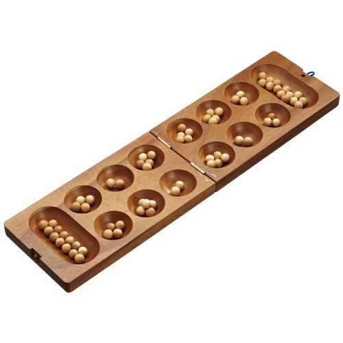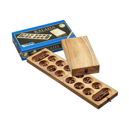 Klahala speelbak die dubbelgeklapt kan worden. In Samena houten uitvoering, en houten kogeltjes. Afmetingen uitgeklapt: 49 x 13 x 2,5 cm en ingeklapt: 24,5 x 13 x 5 cm. Kalah is een van de oudste bordspellen ter wereld en komt uit Afrika. Dit spel heeft simpele regels en biedt veel tactische mogelijkheden. Het doel van het spel is om alle stukken uit de putjes in de Kalah te krijgen. Het bord is ongeveer 48 cm groot wanneer gevouwen. Geschikt voor 2 spelers vanaf 6 jaar.