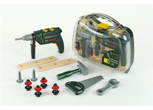 - Op dit moment is Klein Toys Bosch 16-delige gereedschapskoffer - boormachine, hamer, zaag, steeksleutel en gereedschap accessoires - incl. licht- en geluidseffecten - groen in de aanbieding bij Bol.com. Profiteer van deze aanbieding!