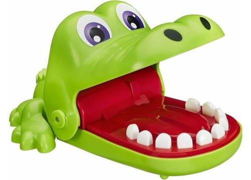 Krokodil met Kiespijn - Kinderspel - Maak je klaar voor oneindig veel plezier met het Krokodil met kiespijn-spel voor kinderen. Verzamel je familie en vrienden voor leuke en spannende momenten met spelers die 'krokodillentandarts' zijn en de tanden in de muil van de krokodil onderzoeken. Let op dat de krokodil niet bijt! De krokodil zal de spelers laten merken wanneer iemand op een zere tand drukt door speels te bijten. Na elke 'beet' kun je het spel resetten door de muil van de krokodil weer te openen. De winnaar is de speler die erin slaagt om niet gebeten te worden. Hasbro Gaming en alle bijbehorende termen zijn handelsmerken van Hasbro.