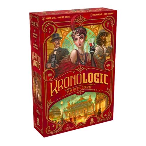 Ga op een ongekende reis met Kronologic en speel in een tijdperk naar keuze! Ontrafel een reeks onverklaarbare gebeurtenissen bij de Parijse Opera om de waarheid te ontdekken. Verzamel aanwijzingen over de bewegingen van de betrokken personages door te bepalen waar ze zich bevonden ten tijde van het incident. Tijdens je beurt lijn je een verdachtekaart uit met een speciale geperforeerde tegel en krijg je twee stukjes informatie over hun bewegingen. Het eerste stuk is alleen voor jouw ogen, maar het tweede moet gedeeld worden met andere spelers!