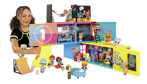 Ontdek het L.O.L. Surprise! Clubhuis, de ultieme speelset vol verrassingen voor de jongste avonturiers! Dit unieke poppenhuis, dat eruitziet als twee moderne scheepscontainers, biedt meer dan 40 verrassingen en tover jouw fantasie tot leven. Eenmaal uitgeklapt, onthult het clubhuis een prachtig ingerichte speelwereld van maar liefst drie verdiepingen. Laat je kinderen de vrijheid beleven om te spelen in meer dan 7 chillgebieden, waaronder een gameroom, skateboardzone, terras en zelfs een bioscoopruimte!
